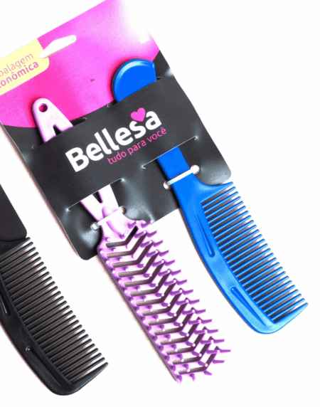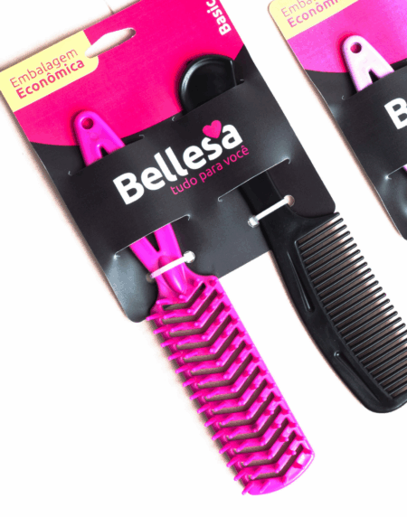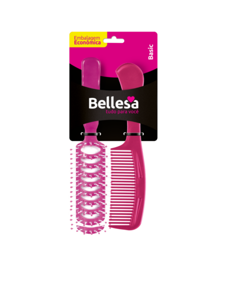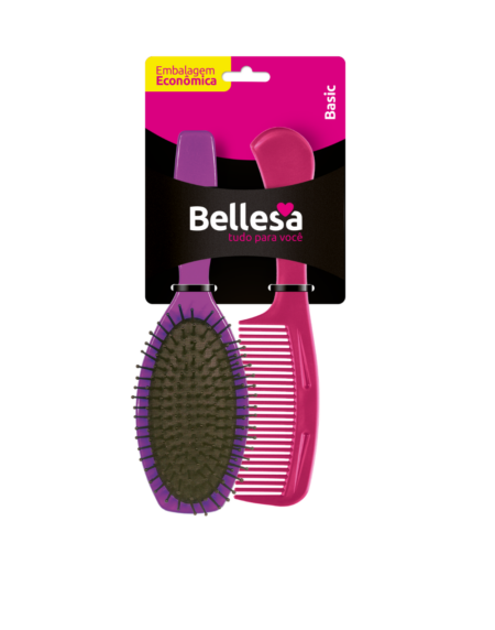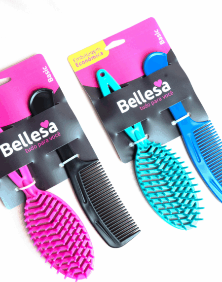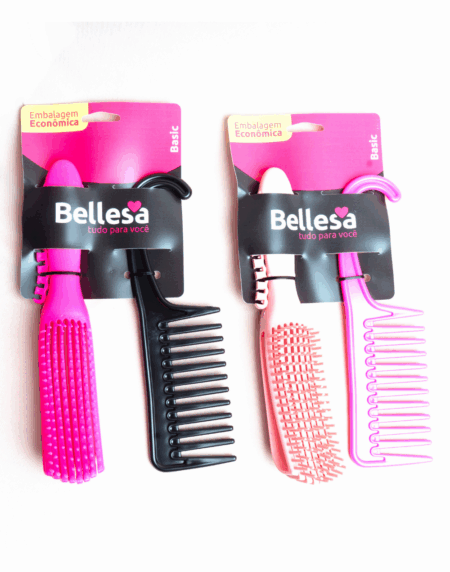Kit Escova de Cabelo Bellesa Flex Reta + Pente PP c/ 2 un. - Cód. 01005-B