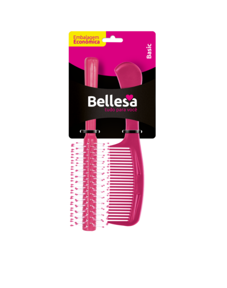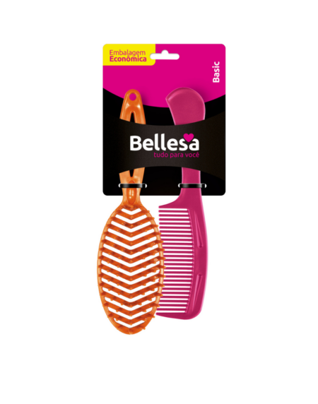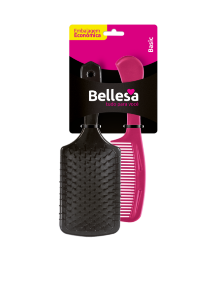Kit Escova de Cabelo Bellesa Rígida Reta + Pente PP c/ 2 un. - Cód. 01006-B